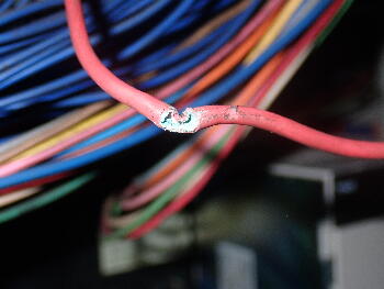 被覆が傷ついていたところが腐食していたため断線した。