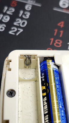 電池の液漏れにより腐食したため断線した。